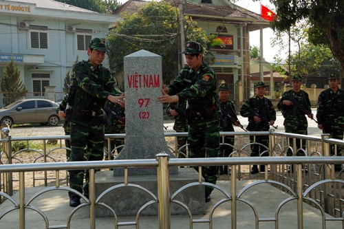 Đội tuần tra Đồn Biên phòng Bát Xát Việt Nam kiểm tra cột mốc 97. |