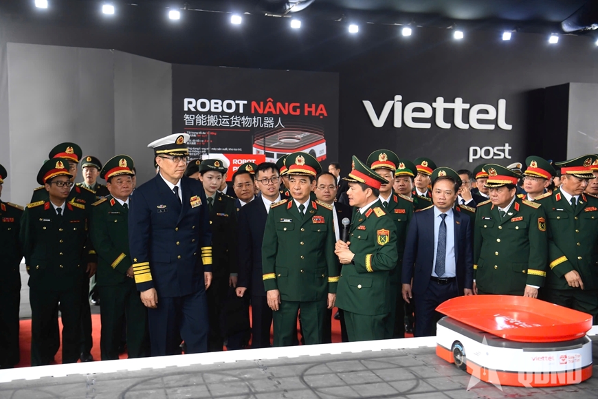 Đại tướng Phan Văn Giang, Bộ trưởng Bộ Quốc phòng Việt Nam và Thượng tướng Đổng Quân, Bộ trưởng Bộ Quốc phòng Trung Quốc tham quan Công viên Logistics Viettel Lạng Sơn trong khuôn khổ Giao lưu hữu nghị quốc phòng biên giới Việt Nam - Trung Quốc lần thứ 9, tháng 4-2025. Ảnh: TUẤN HUY |