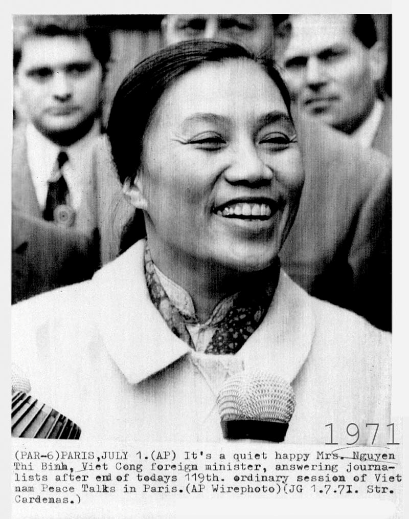 Nụ cười rạng rỡ của "bà hoàng Việt cộng" Nguyễn Thị Bình. Ảnh tư liệu
