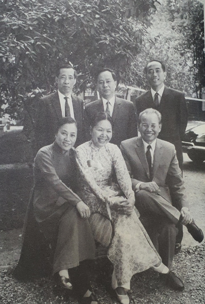 Bà Nguyễn Thị Bình (ngồi ngoài cùng, bên trái) cùng các đồng chí đại diện hai phái đoàn của ta tại Hội nghị Paris. Ảnh tư liệu