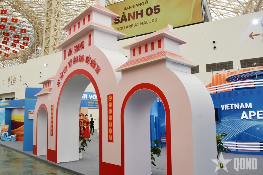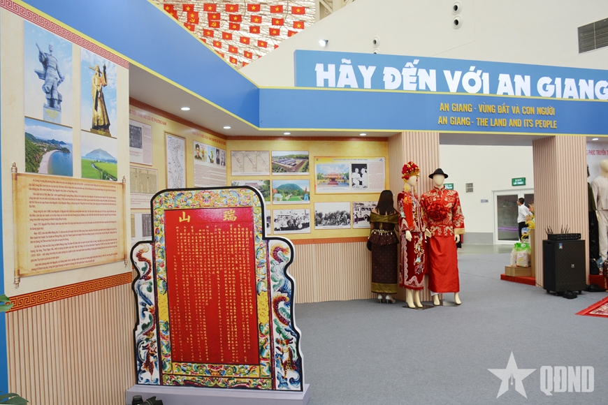 Không gian triển lãm của tỉnh An Giang được chia thành 4 mảng: An Giang - Vùng đất và con người; Quá trình đấu tranh chống giặc ngoại xâm, bảo vệ quê hương; An Giang - Đổi mới, hội nhập và phát triển; An Giang - Tầm nhìn tương lai.