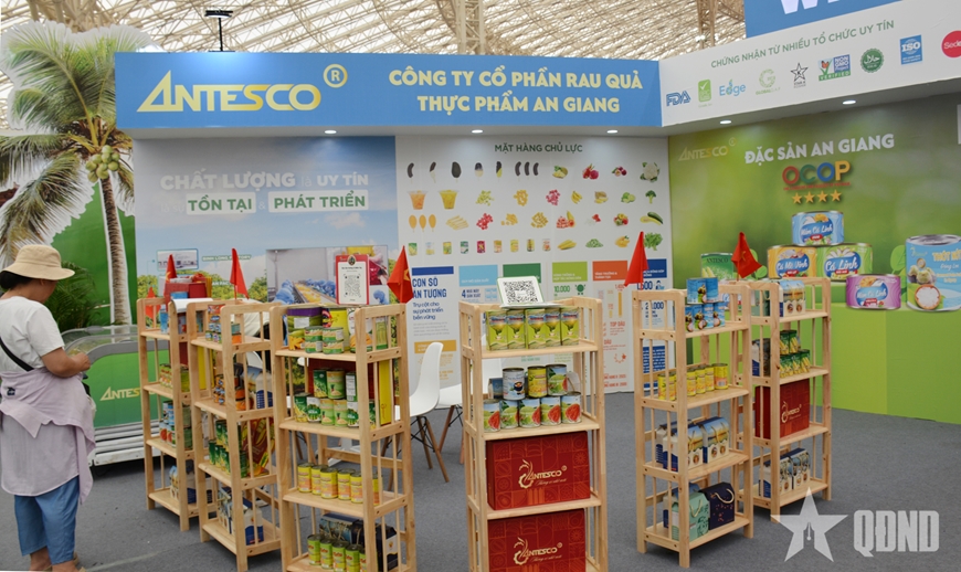 Khu vực trưng bày sản phẩm phục vụ khách tham quan trải nghiệm thử các hàng hóa, sản phẩm có thương hiệu chất lượng cao trên thị trường. Tại không gian “Chuyến tàu ẩm thực xanh”, các nghệ nhân ẩm thực của An Giang sẽ giới thiệu những món ăn đặc sắc như bún cá Rạch Giá, bún cá Châu Đốc, bún kèn Hà Tiên, cơm tấm Long Xuyên, các loại giải khát từ trái thốt nốt… phục vụ khách tham quan.