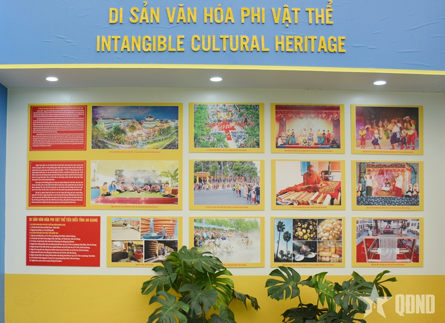 Khu vực giới thiệu những di sản văn hóa phi vật thể tiêu biểu của tỉnh An Giang, như: Lễ hội Vía Bà Chúa Xứ núi Sam; hội đua bò Bảy Núi; tri thức và kỹ thuật viết chữ trên lá buông của đồng bào dân tộc thiểu số Khmer; nghề dệt thổ cẩm đồng bào dân tộc thiểu số Chăm; nghề làm đường thốt nốt của đồng bào dân tộc thiểu số Khmer…