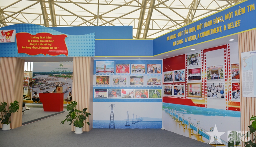 Không gian triển lãm tỉnh An Giang với chủ đề "An Giang - Một tầm nhìn, một hành động, một niềm tin". Chủ đề này là câu nói trong bài phát biểu của Tổng Bí thư Tô Lâm tại buổi làm việc với Ban Thường vụ Tỉnh ủy Kiên Giang và Thường trực Tỉnh ủy An Giang (tháng 6-2025), là kim chỉ nam cho chặng đường phát triển của tỉnh An Giang trong hiện tại và tương lai, đưa An Giang vững bước vào kỷ nguyên mới.