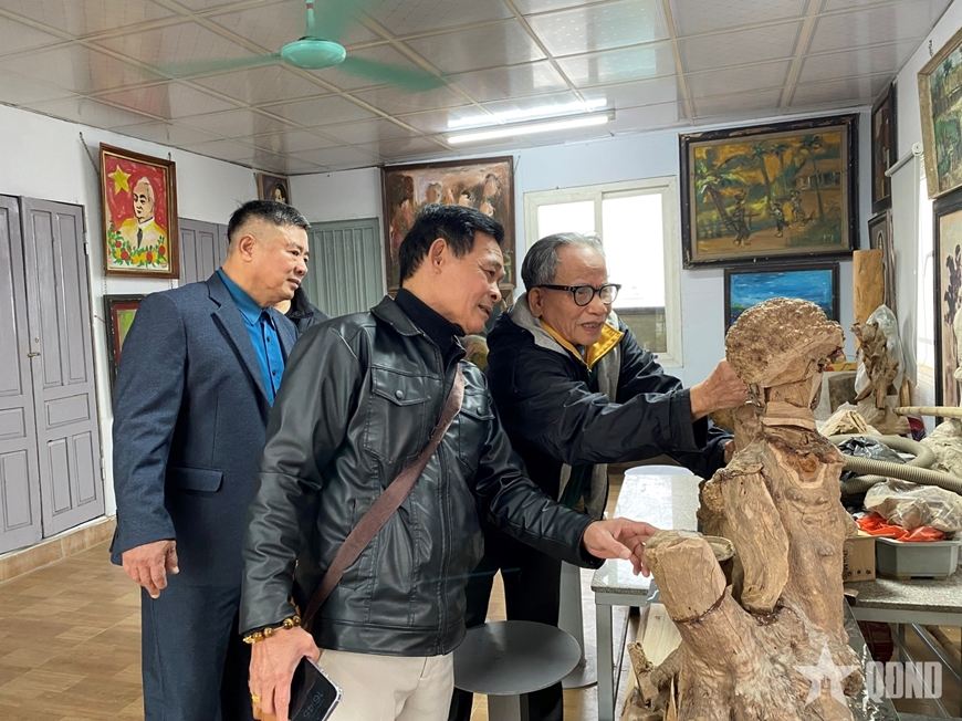 Ghé thăm ông một ngày, ông vừa tiếp khách. Người họ hàng xa đưa theo bạn đến thăm, được ông giới thiệu 4-5 tầng nhà trưng bày tác phẩm của ông qua các thời kỳ. Khi tôi đến, ngồi nói chuyện, rồi ông nhiệt tình đưa đi từng tầng, giới thiệu, kể chuyện về những tác phẩm.
