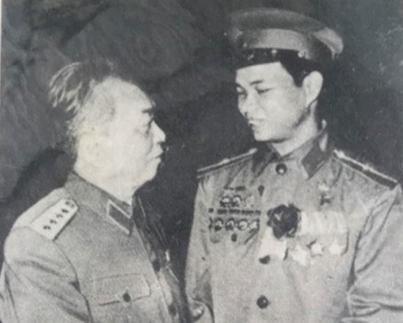 | Đồng chí Kiều Văn Niết vinh dự được gặp Đại tướng Võ Nguyên Giáp. |