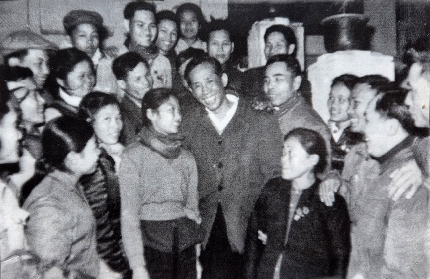 | Đồng chí Lê Duẩn với các anh hùng của tỉnh Quảng Bình. Trong ảnh: Anh hùng Trần Thị Lý đứng bên trái đồng chí Lê Duẩn. Ảnh tư liệu |