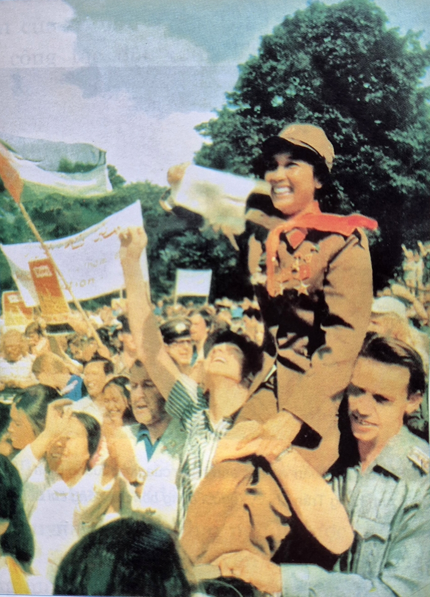 Anh hùng Trần Thị Lý với các bạn Cuba. Ảnh tư liệu