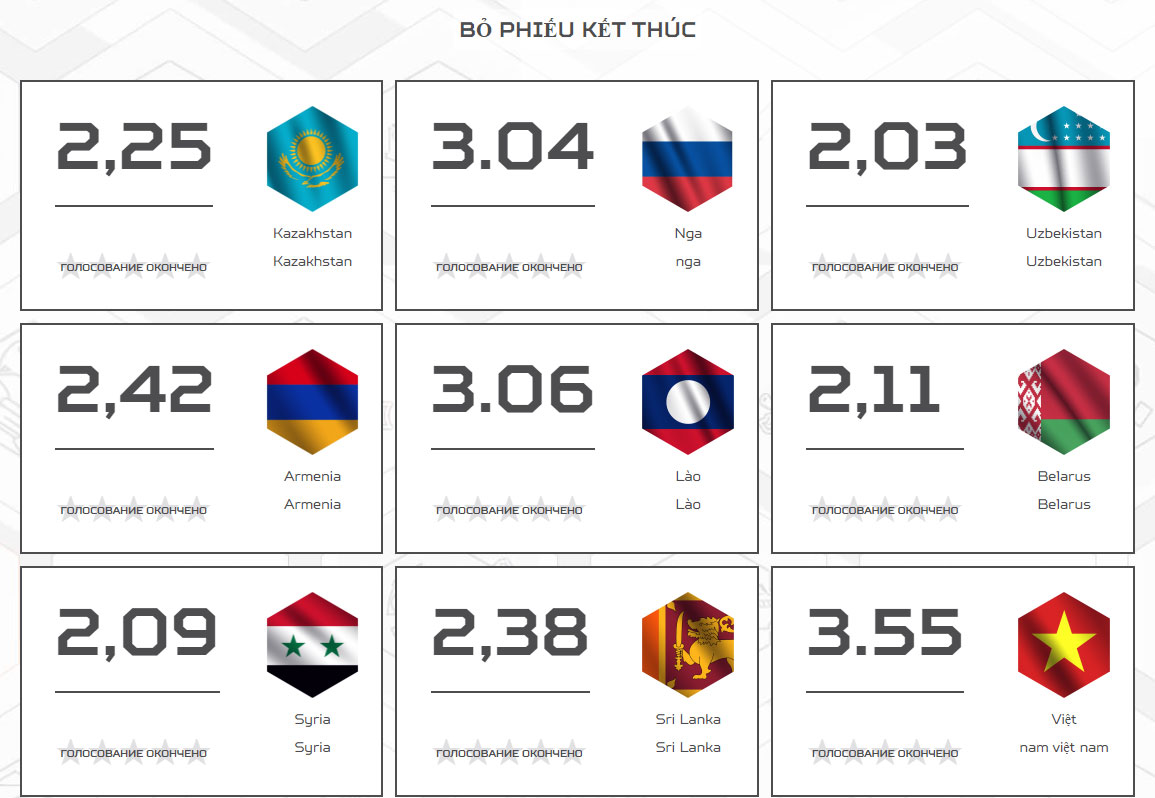Từ Liên bang Nga, Thượng tá Đặng Mỹ Hạnh, Đội trưởng Đội tuyển Văn hóa - Nghệ thuật Quân đội nhân dân (QĐND) Việt Nam tham gia Hội thao Quân sự quốc tế (Army Games) 2021 nói qua điện thoại như reo vui trong niềm tự hào: Việt Nam đạt điểm cao nhất về kết qủa Bình chọn trực tuyến cuộc thi “Đội quân văn hoá”, với số điểm 3,55.