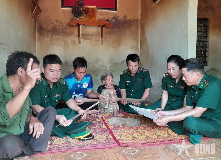 Cán bộ, chiến sĩ Đồn Biên phòng Cửa khẩu quốc tế La Lay thường xuyên thăm hỏi Bà mẹ Việt Nam anh hùng Căn Thung.