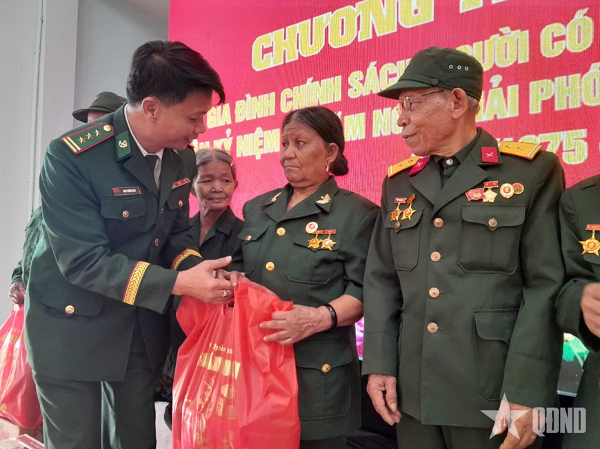 | Đồn Biên phòng Cửa khẩu quốc tế La Lay tặng quà người có công với cách mạng trên địa bàn. |