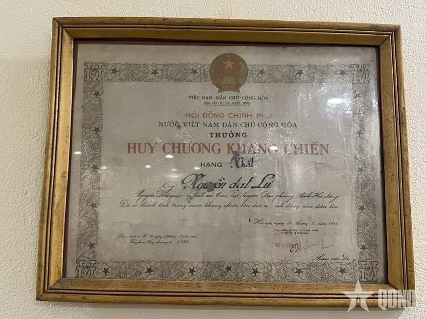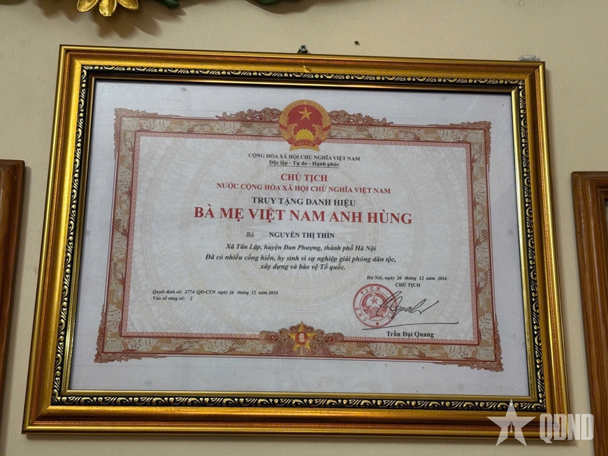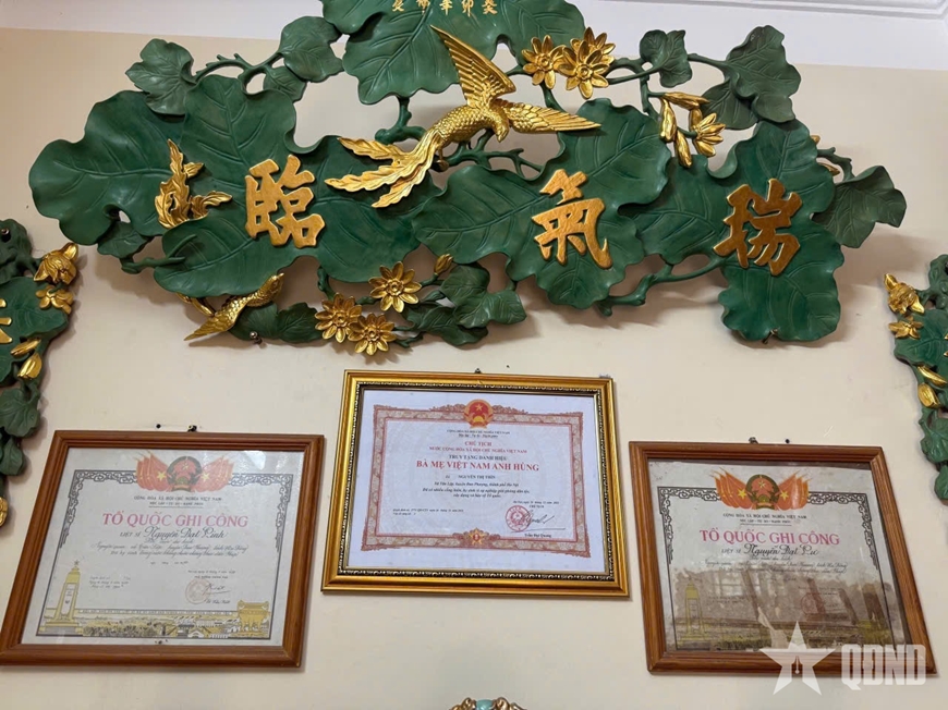 Tấm bằng Danh hiệu Bà mẹ Việt Nam anh hùng Nguyễn Thị Thìn, cùng Bằng Tổ quốc ghi công hai liệt sĩ Nguyễn Đạt Lư và Nguyễn Đạt Linh được treo trang trọng.