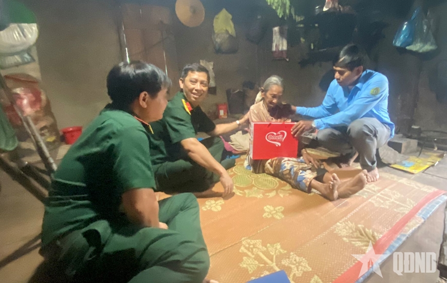 | Đoàn công tác Ban CHQS huyện Ba Tơ đến thăm Bà mẹ Việt Nam anh hùng Đinh Thị Máy, tháng 6-2025 |