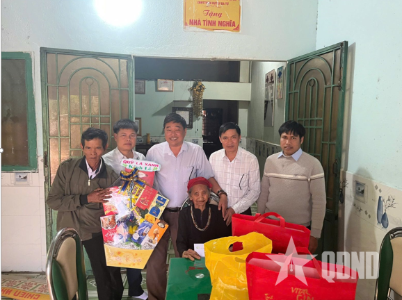 | Đoàn công tác xã Ba Tô, tỉnh Quảng Ngãi đến thăm, tặng quà Bà mẹ Việt Nam anh hùng Đinh Thị Máy, tháng 1-2026. Ảnh do Văn phòng HĐND,UBND xã Ba Tô cung cấp |