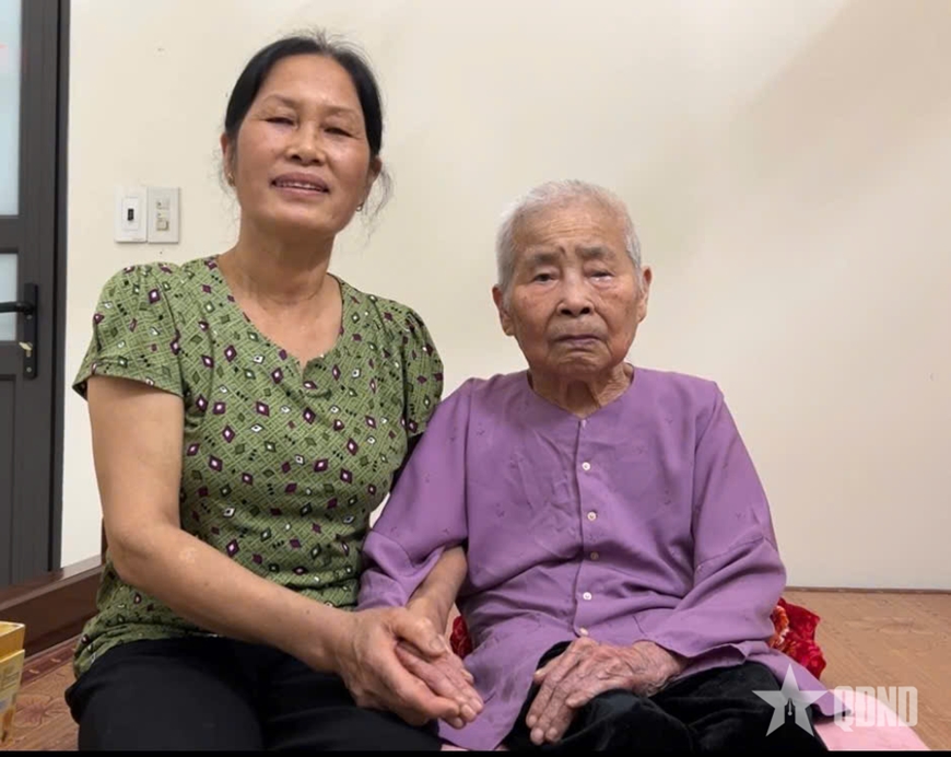 Bà mẹ Việt Nam Anh hùng Lê Thị Ngọ bên người con dâu hiếu thảo Nguyễn Thị Hái.