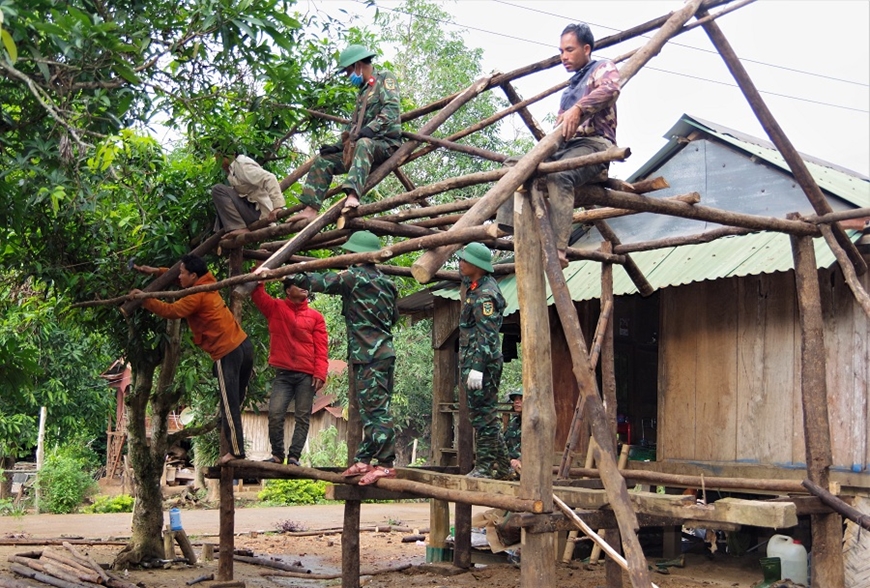 Cán bộ, nhân viên Đoàn Kinh tế-Quốc phòng 337 giúp gia đình khó khăn sửa chữa nhà ở.
