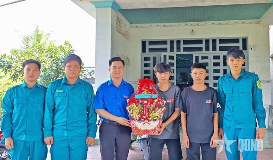 | Đoàn phường An Tịnh, tỉnh Tây Ninh tặng quà động viên Gia Huy và Gia Bảo trước ngày lên đường nhập ngũ. |