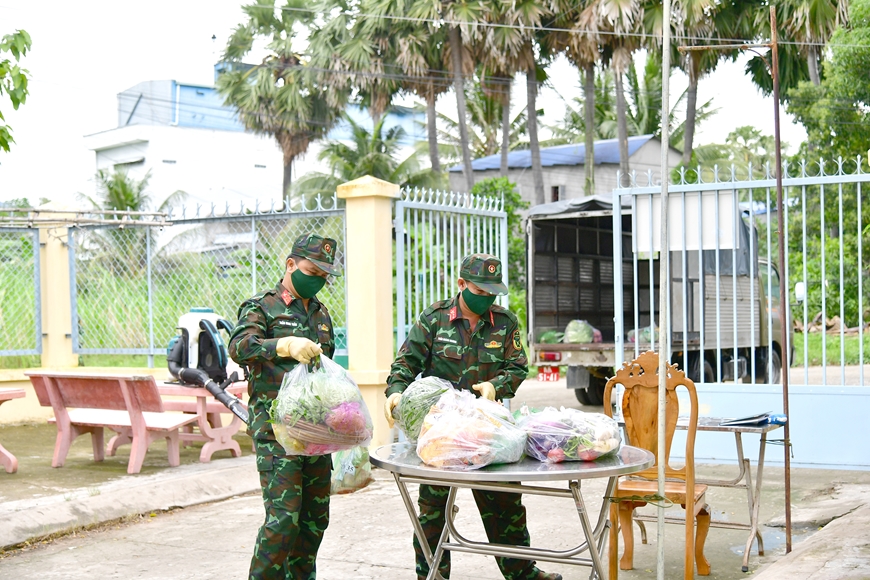 Trong thời gian thực hiện giãn cách xã hội để phòng, chống dịch (PCD) Covid-19, bên cạnh việc bảo đảm nguồn thực phẩm tại chỗ, Sư đoàn 330 (Quân khu 9) còn chủ động cung cấp các loại nhu yếu phẩm cho khu gia đình quân nhân (xem ảnh). Cách làm này giúp các hộ gia đình hạn chế đi chợ, tránh tiếp xúc nơi đông người, bảo đảm an toàn PCD.