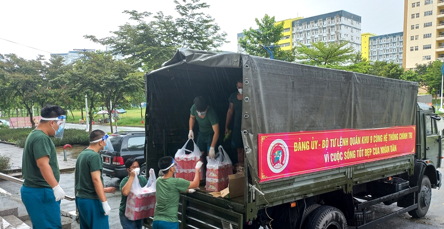 Tính đến nay, Quân khu 9 đã hỗ trợ TP Hồ Chí Minh 6 tỷ đồng tiền mặt; 857 tấn gạo; 1.130 tấn rau, củ, quả; 86 tấn thịt, cá khô các loại; 8.000 lít nước mắm; 100.000 quả trứng vịt; 12.730 thùng mì tôm; 50 tấn trái cây...