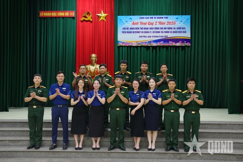 Để hoạt động thiết thực, chỉ huy Lữ đoàn mời Trưởng công an phường Xuân Hòa (tỉnh Phú Thọ) và đại diện Ngân hàng Thương mại Cổ phần Quân đội (MB) trên địa bàn đến tuyên truyền về tội phạm công nghệ cao, lừa đảo chiếm đoạt tài sản, mạo danh ngân hàng. Các chuyên gia cũng hướng dẫn cách quản lý tài khoản, chi tiêu tiết kiệm, bảo vệ thông tin cá nhân trong môi trường số, giúp cán bộ trẻ nâng cao cảnh giác trước những chiêu trò tinh vi của đối tượng xấu.