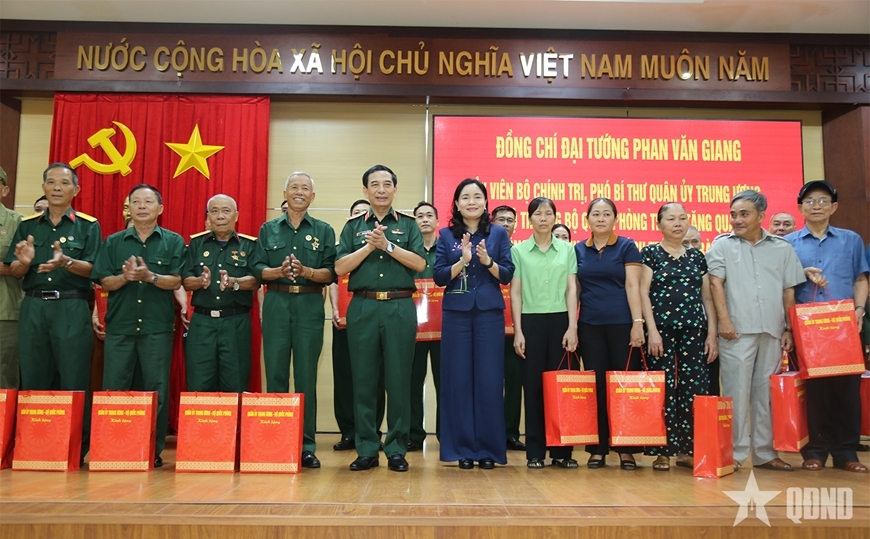 | Đại tướng Phan Văn Giang, Ủy viên Bộ Chính trị, Phó bí thư Quân ủy Trung ương, Bộ trưởng Bộ Quốc phòng tặng quà gia đình chính sách và người có công tiêu biểu tỉnh Đắk Lắk nhân dịp kỷ niệm 78 năm Ngày Thương binh - Liệt sĩ (27-7-1947 / 27-7-2025). Ảnh: qdnd.vn |