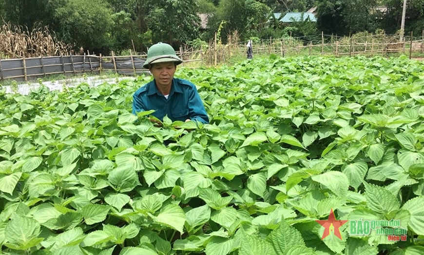 | Nông dân xã Bao La, huyện Mai Châu chuyển đổi đất trồng lúa kém hiệu quả sang trồng tía tô Hàn Quốc. |