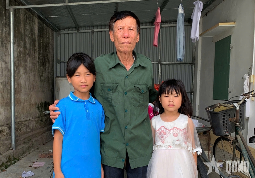 Cựu chiến binh Nguyễn Văn Toán và hai cháu nhỏ được ông nhận nuôi.