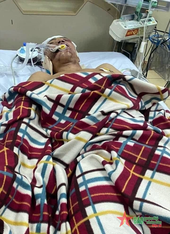 | Bạch Đình Tuấn đang nằm điều trị tại bệnh viện. Ảnh do gia đình cung cấp |