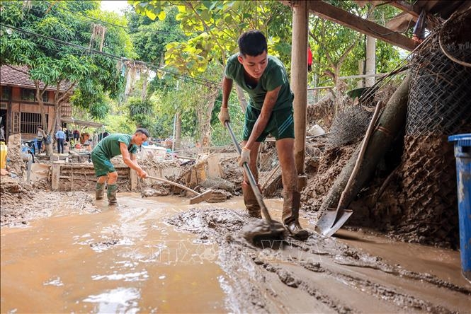 | Lực lượng bộ đội luôn có mặt tại tuyến đầu phòng chống bão lũ, giúp dân sớm khắc phục, ổn định cuộc sống. Ảnh: TTXVN |