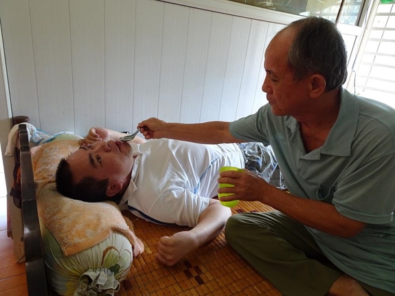 Ông Phạm Văn Trọng, Bí thư Tổ dân phố số 3 cho biết: “Gia cảnh của thương binh Triệu Văn Quý vô cùng khó khăn. Mặc dù tuổi cao nhưng ông vẫn phải lo chăm sóc anh Tú nằm liệt giường, lại thêm người con thứ hai bị nhiễm chất độc da cam/dioxin nên cuộc sống càng khó khăn hơn. Hằng ngày, sau khi vệ sinh và cho Tú ăn uống, ông Quý lại đến các gia đình trong khu ai thuê gì làm nấy. Mỗi ngày ông Quý cũng kiếm được từ vài chục nghìn đến 100.000 đồng, tạm đủ rau cháo cho 3 cha con”.