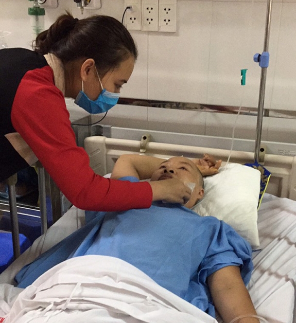 | Bà Trần Thị Thủy trong bệnh viện. |