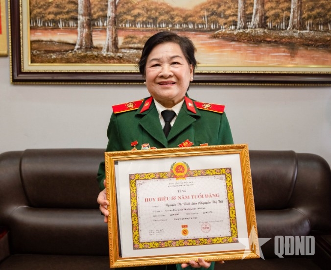 Bà Nguyễn Thị Bích Liên nhận Huy hiệu 55 năm tuổi Đảng, năm 2024.