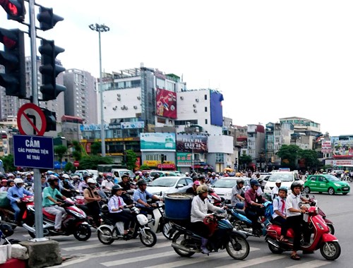 Cảnh giao thông lộn xộn tại nút giao Nguyễn Lương Bằng - Xã Đàn (TP Hà Nội). Ảnh: HOÀNG HẢI.