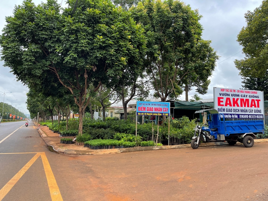 | Hợp tác xã thương mại-dịch vụ Hòa Thắng Ea Kmat lấn chiếm đoạn dài hè phố tại số 55 Nguyễn Lương Bằng (xã Hòa Thắng, TP Buôn Ma Thuột, tỉnh Đắc Lắc) để kinh doanh cây giống. |