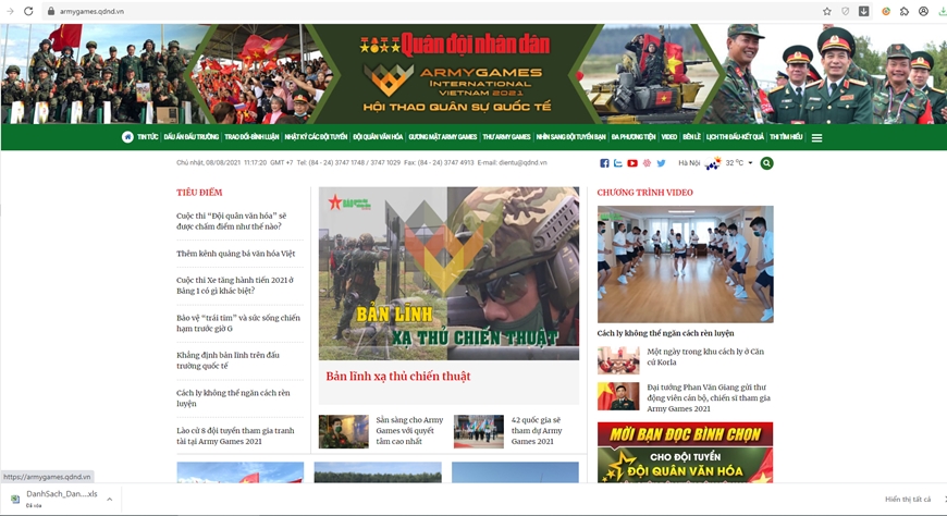 Nhằm đáp ứng yêu cầu tuyên truyền về hoạt động của các đội tuyển QĐND Việt Nam tại Hội thao Quân sự quốc tế (Army Games 2021), Báo QĐND Điện tử đã ra mắt trang chuyên đề với nhiều nội dung đặc sắc tại địa chỉ http://armygames.qdnd.vn.