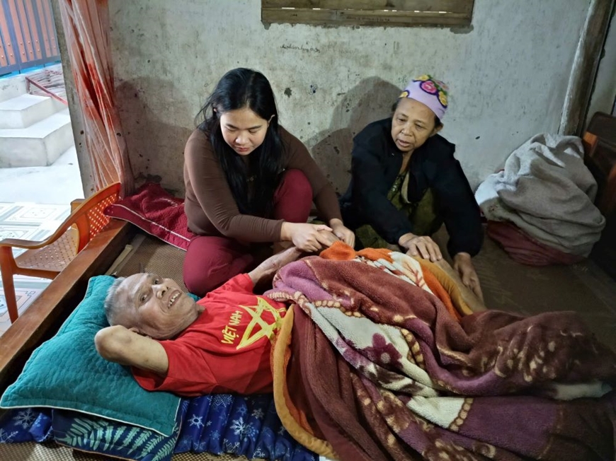 Cựu chiến binh Trần Văn Hòa nằm liệt, hoàn cảnh gia đình hết sức khó khăn.
