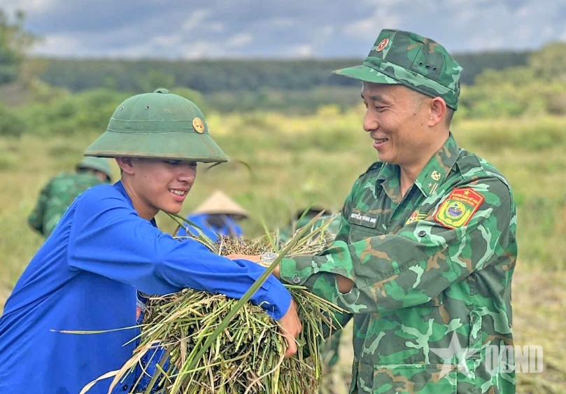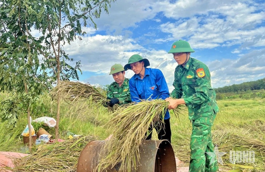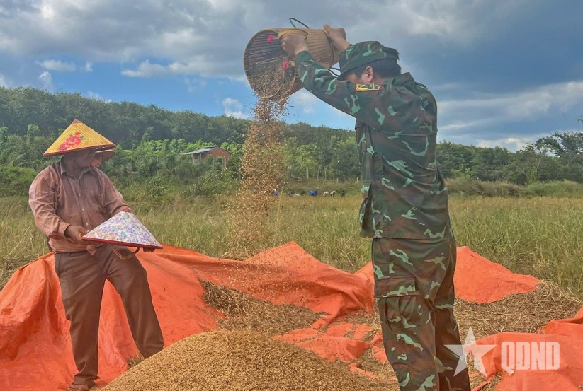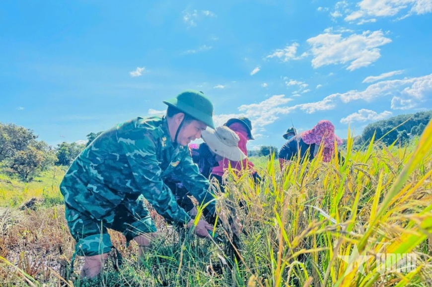 Hằng năm, cứ đến mùa thu hoạch lúa của đồng bào dân tộc thiểu số xã biên giới Ia Pnôn (Gia Lai), cán bộ, chiến sĩ Đồn Biên phòng Ia Pnôn (Ban chỉ huy Bộ đội Biên phòng tỉnh Gia Lai) lại xuống đồng giúp nhân dân.