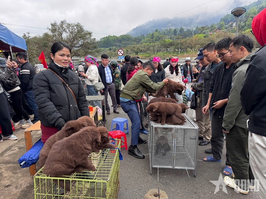| Khu chợ bán chó thu hút nhiều người đến xem. |