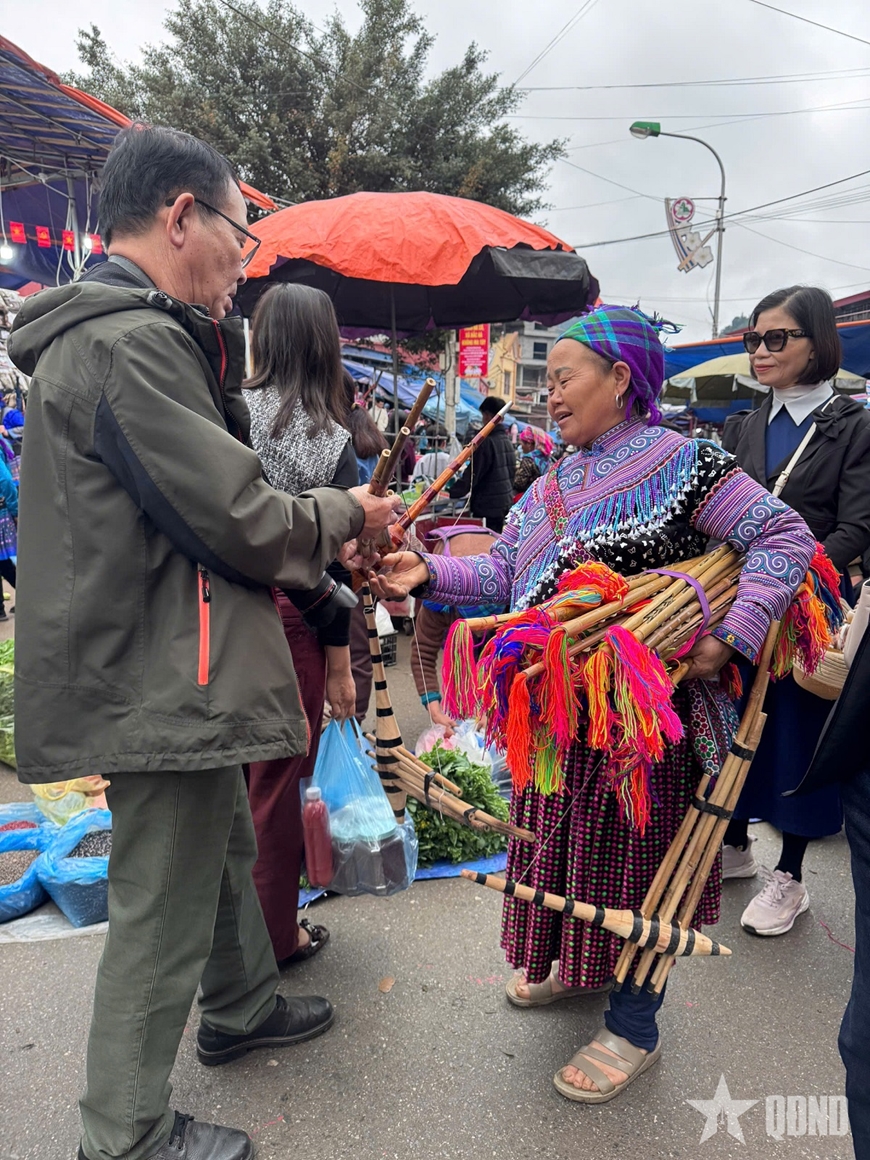 | Du khách lựa chọn mua nhạc cụ truyền thống của đồng bào dân tộc. |
