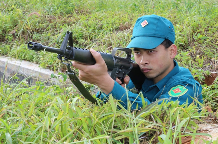 | Chiến sĩ dân quân thường trực luyện tập phương án chiến đấu. |