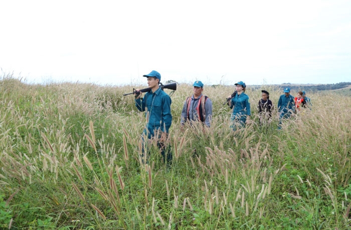 | Lực lượng dân quân cùng nhân dân xã Thuận Hà tuần tra, kiểm soát địa bàn. |