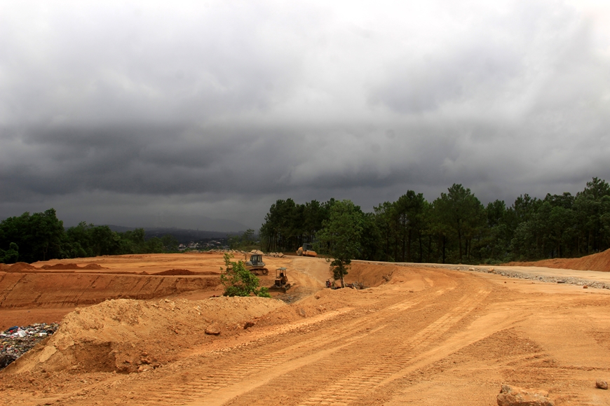 | Một quả đồi được san gạt tạo mặt bằng để dựng cột tua-bin. |