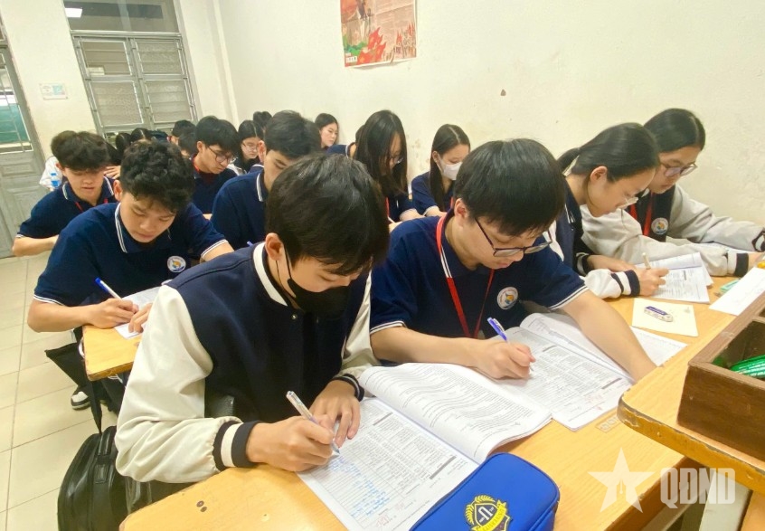 | Học sinh Trường THPT Hoàng Cầu (Hà Nội) trong giờ học tiếng Anh. |