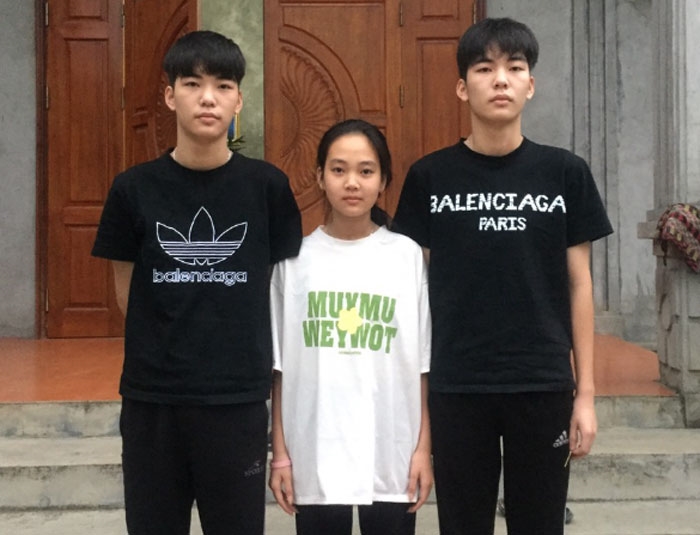 Phùng Văn Mạnh (bên phải) và Phùng Văn Khỏe cùng em gái. |