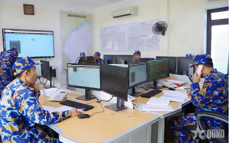 | Bộ đội Trung đoàn 151, Vùng 1 Hải quân trong một ca trực. Ảnh: XUÂN BIÊN |