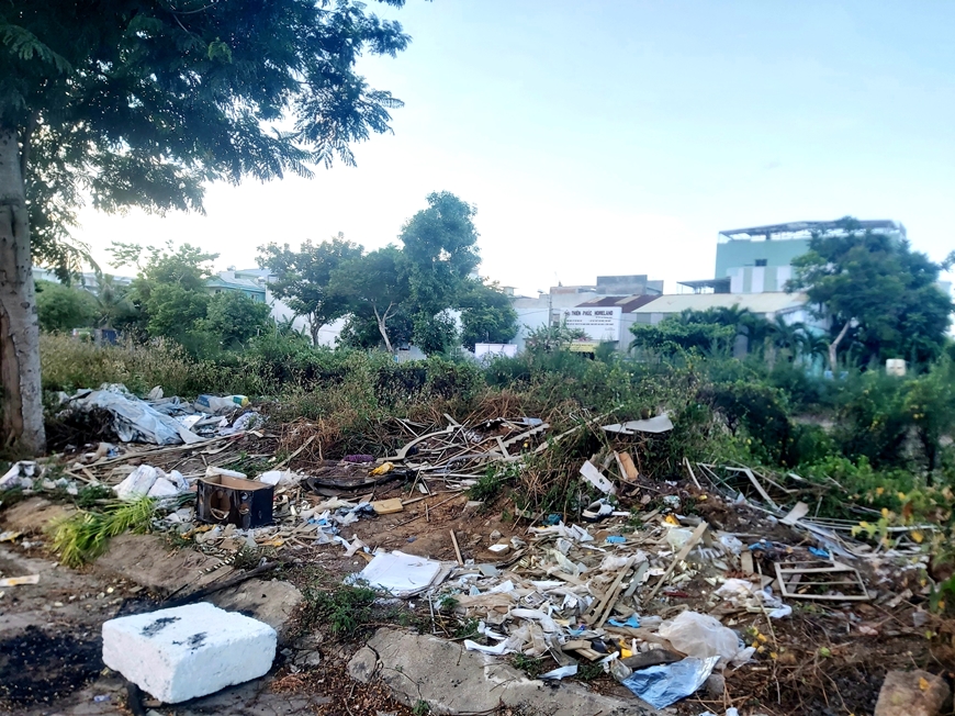 | Rác thải trên tuyến đường chưa có tên (song song với đường Nguyễn Xí) thuộc địa bàn phường Hòa Minh, quận Liên Chiểu (Đà Nẵng). |