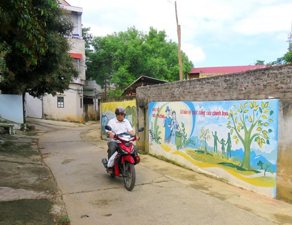 Đi dọc tuyến đường hơn 600m quanh khu dân cư và nhà văn hóa tổ, những bước tường xù xì như được khoác chiếc áo mới với nội dung như: Tuyên truyền phòng, chống tệ nạn xã hội, bảo đảm an toàn giao thông, bảo vệ môi trường, thực hiện nếp sống văn minh đô thị… Các bức hình, câu khẩu hiệu đều được cộng đồng dân cư kiểm duyệt nội dung, sau đó tổ dân phố thuê các thợ vẽ chuyên nghiệp thực hiện nên có tính thẩm mỹ cao, tạo sự thu hút.