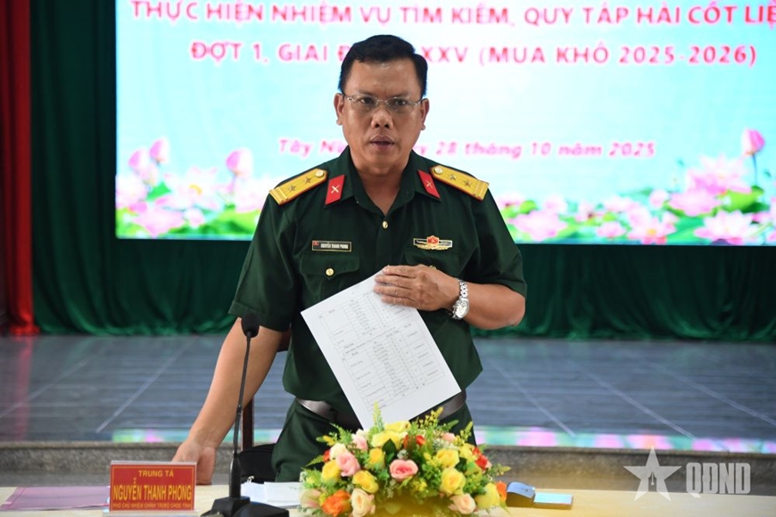 Ngày 28-10, đoàn công tác Bộ CHQS tỉnh Tây Ninh do Trung tá Nguyễn Thanh Phong, Phó chủ nhiệm Chính trị Bộ CHQS tỉnh làm trưởng đoàn đã đến thăm và kiểm tra công tác chuẩn bị của Đội K71 trước khi đơn vị lên đường thực hiện nhiệm vụ tìm kiếm, quy tập hài cốt liệt sĩ đợt 1, giai đoạn XXV (mùa khô 2025-2026).