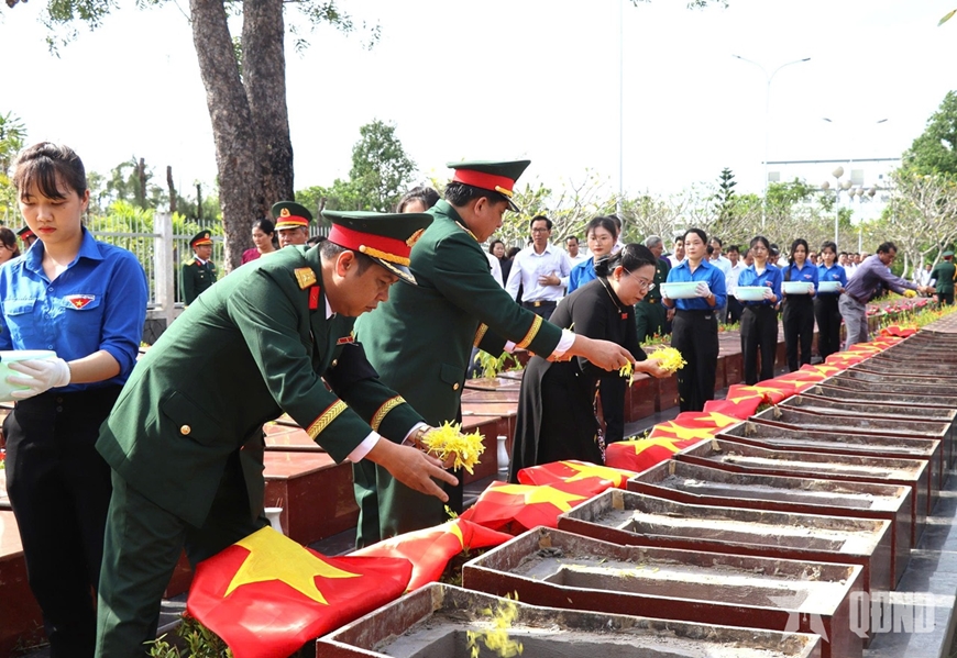 Trước anh linh các liệt sĩ, thay mặt Đảng bộ, chính quyền, quân và dân thành phố, đồng chí Phó chủ tịch TP Cần Thơ bày tỏ lòng biết ơn đối với các Anh hùng liệt sĩ và nguyện đoàn kết một lòng, tiếp bước con đường mà Đảng, Bác Hồ đã lựa chọn; tiếp tục bảo vệ thành quả cách mạng, bảo vệ và xây dựng đất nước ngày càng giàu đẹp để xứng đáng với sự hy sinh cao cả của các liệt sĩ và sẽ chăm sóc chu đáo phần mộ của các liệt sĩ.