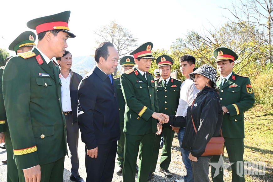 | Đoàn công tác thăm hỏi, động viên thân nhân các liệt sĩ. |